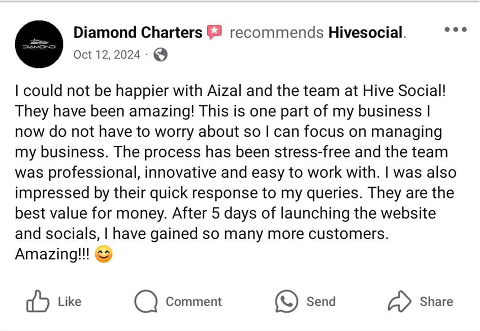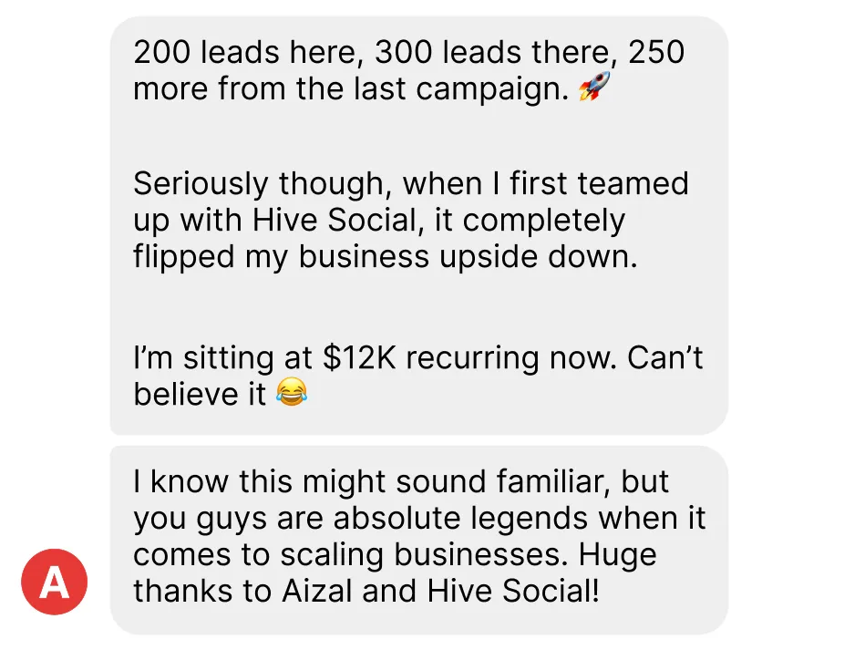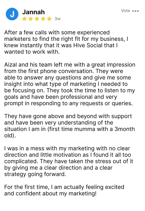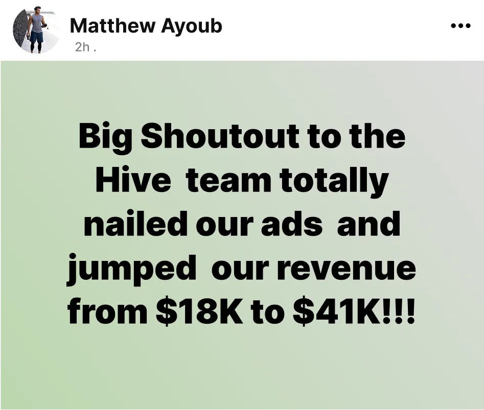 No longer had to pay multiple marketing agency fees + ad spend, now can work Hive under 1 umbrella to complete my entire marketing